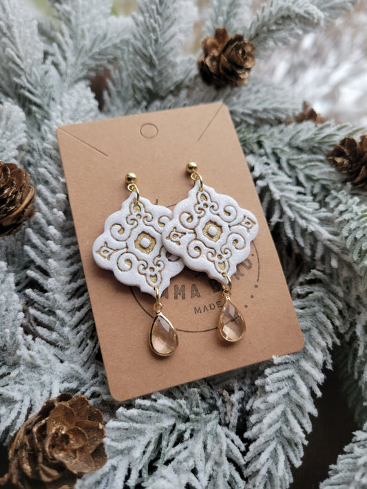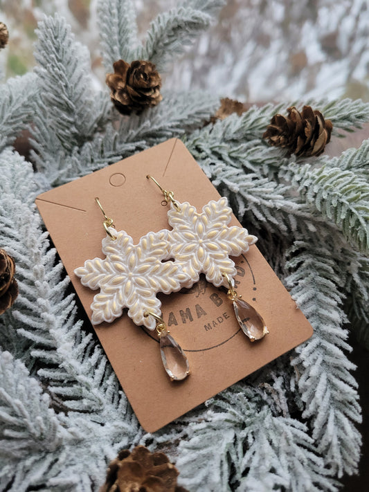 Sold outGold & White Snowflake Dangle