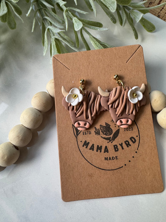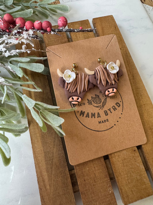 Highland Cow Dangle on Ball Post -Brown
