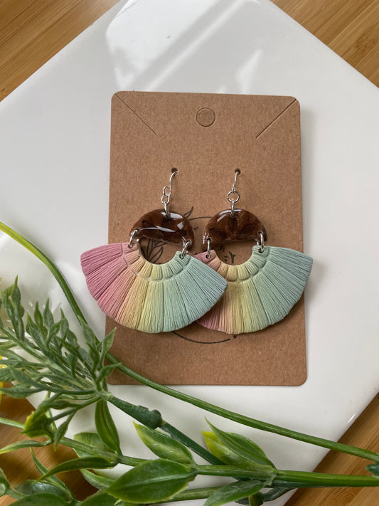 Neutral-ish Rainbow Macramé on Faux Wood Dangle