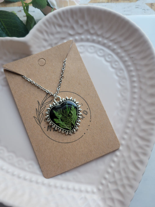 Silver Heart Pendant w/ Pressed Fern Necklace