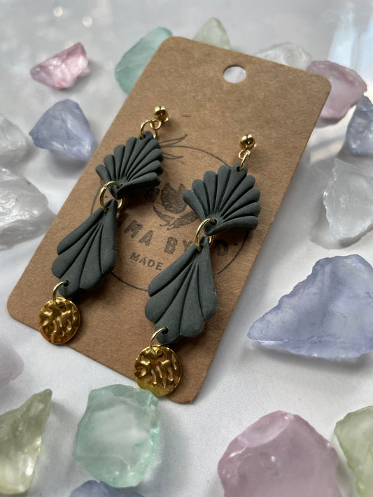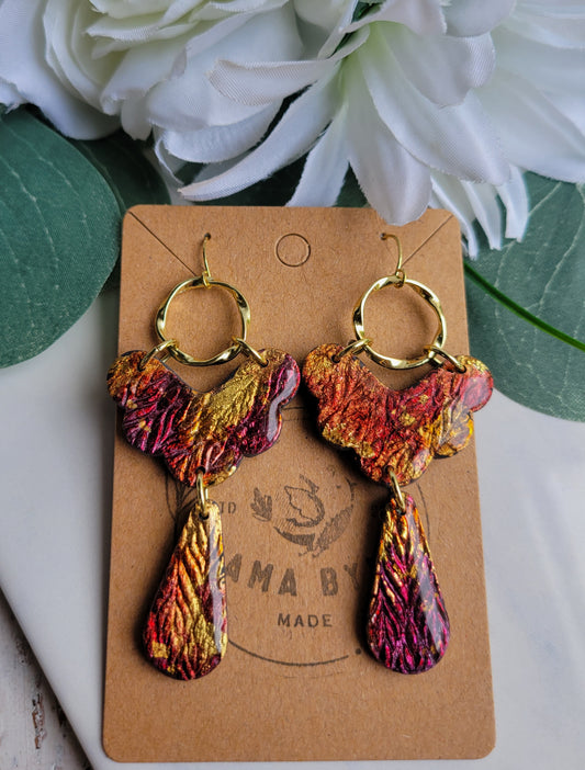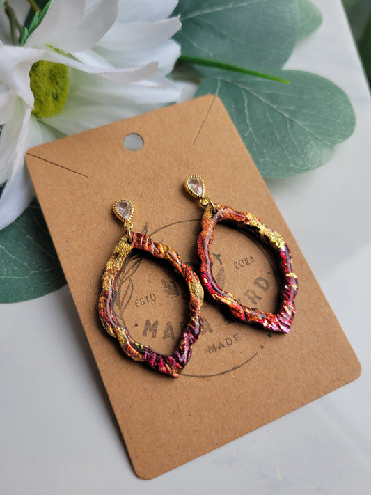 Ruby & Gold Open Scalloped Dangle on Cubic Zirconia Post