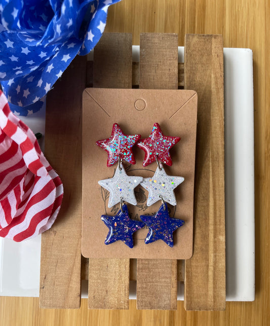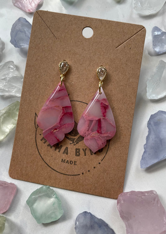 Ruby and Pink Rose Dangle on Cubic Zirconia Stud