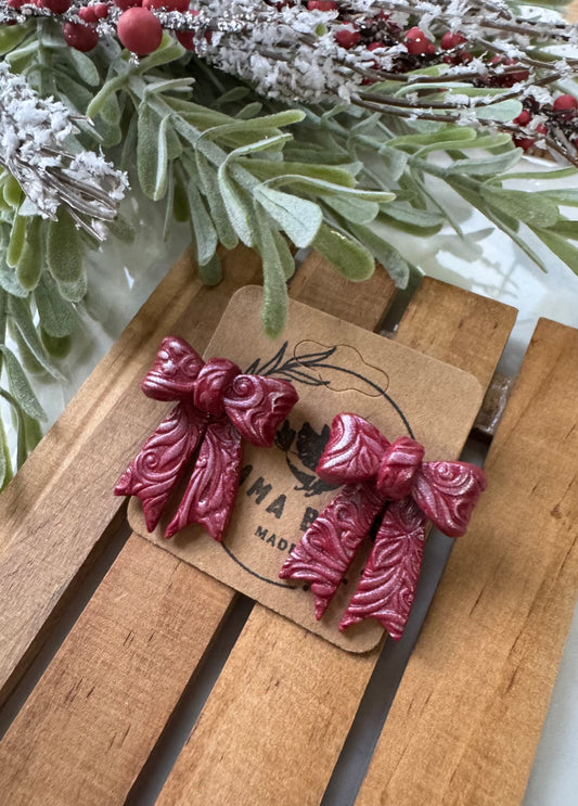 Frosted Red Bow Studs